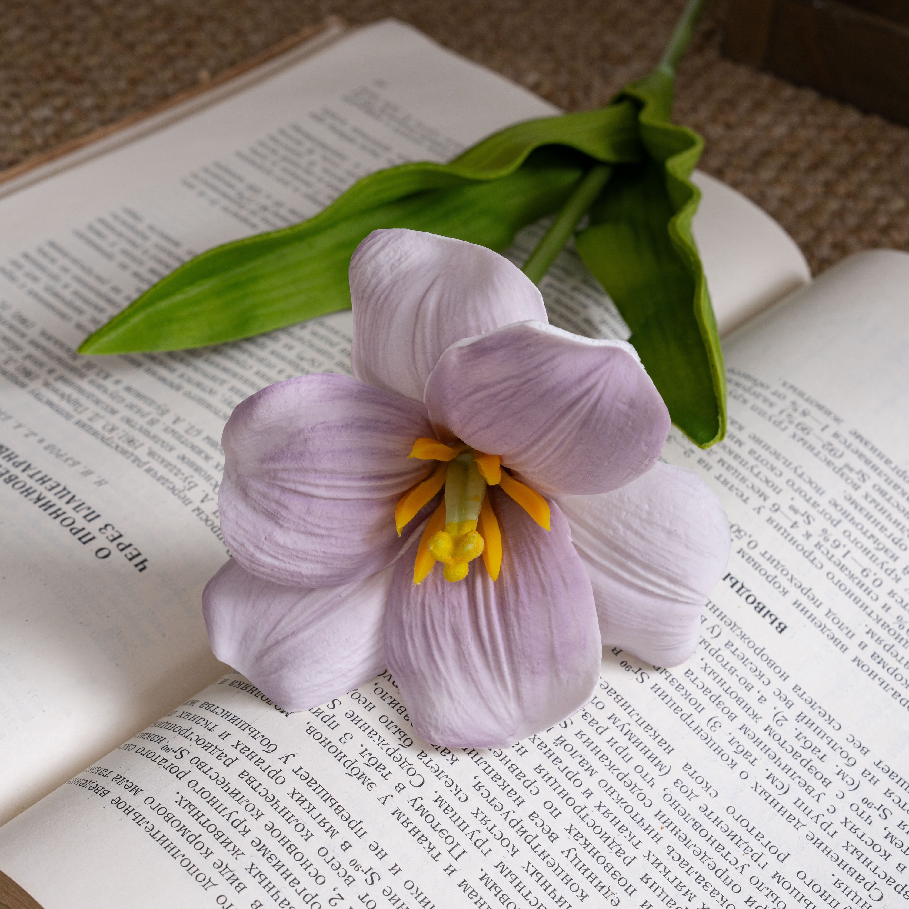 With its completely opened petals and realistic design that perfectly reflects the beauty of a tulip in full bloom, this artificial tulip will add classic elegance to your décor. Made from premium materials, this tulip is ideal for adding a bit of natural appeal to your house, workplace, or event space without requiring any maintenance.