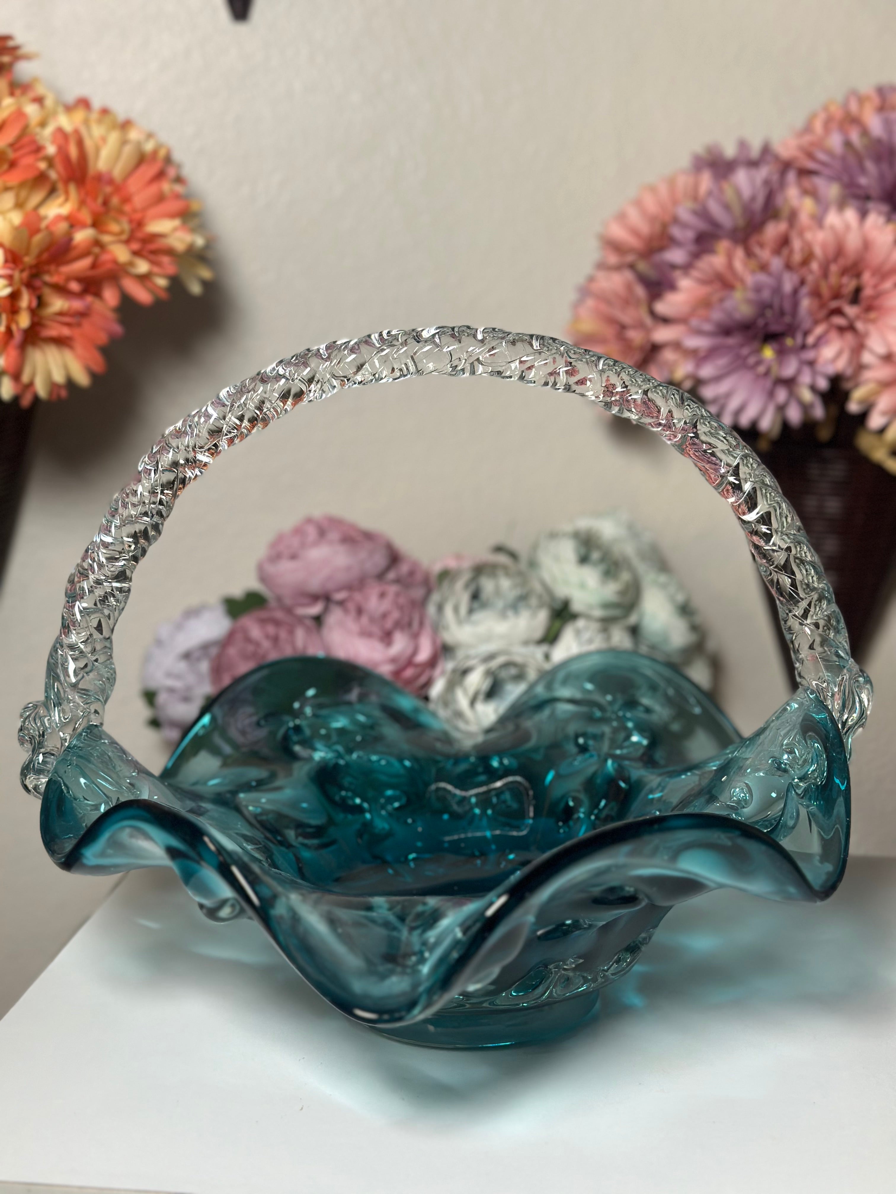 The Blue Wine Glass Fruit Bowl represents a sophisticated blend of aesthetic appeal and practical use, drawing inspiration from the classic allure of fine wine glasses. This fruit bowl, made from hand-blown glass, showcases a deep, translucent blue color that enhances the aesthetic of any table setting. The elegantly flared edges and stem-like base form a distinctive silhouette akin to that of a wine glass, serving as both a decorative and functional centerpiece. The Blue Wine Glass Fruit Bowl serves multiple purposes, effectively displaying fresh fruits, decorative items, or functioning as a distinct statement piece. Its sophisticated design aligns seamlessly with modern, coastal, or minimalist interior styles.