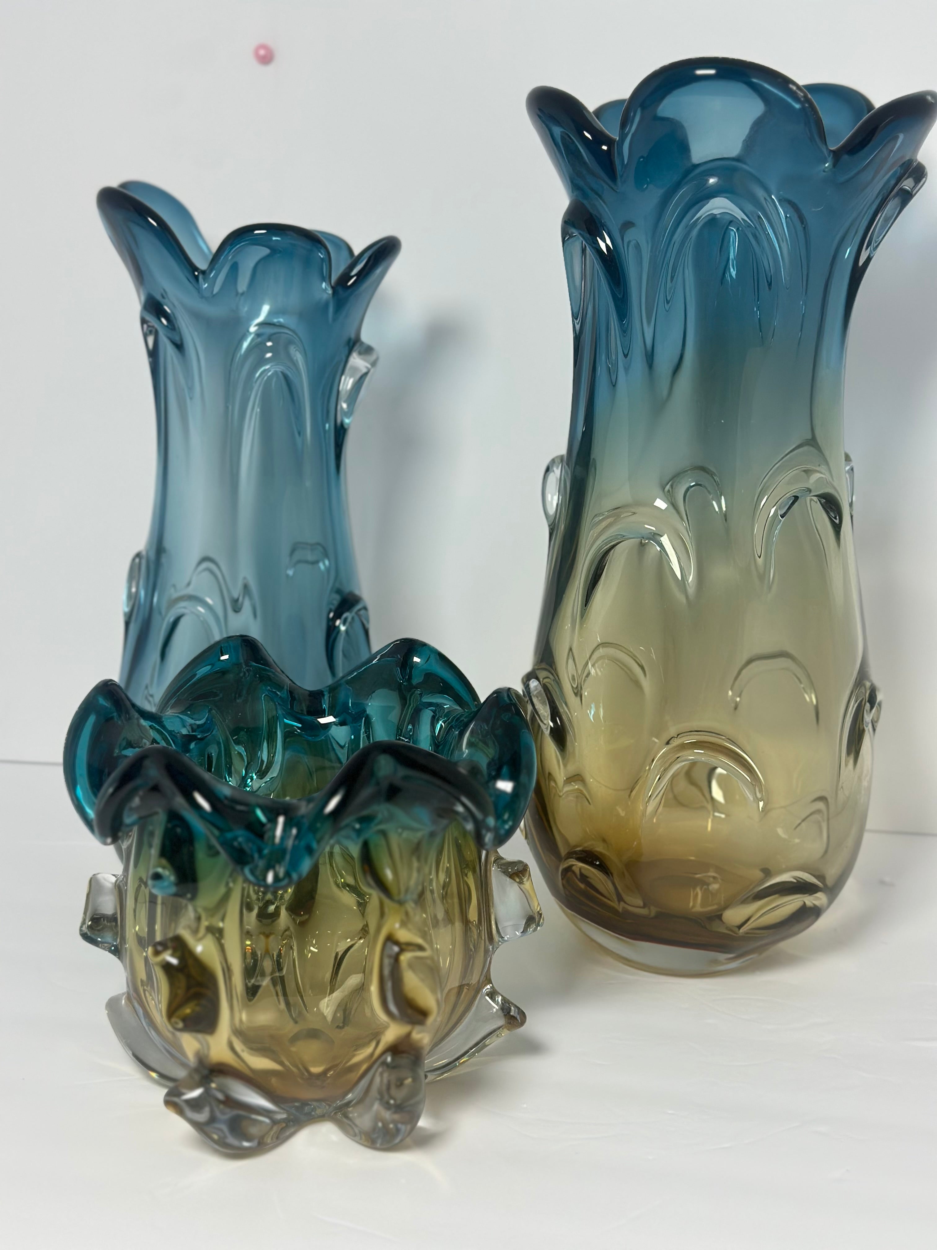 The Azul Oro Glass Vase with Fruit Bowl represents a sophisticated collection that merges deep blue tones with golden highlights, resulting in a striking visual contrast that draws attention. The vases, made from hand-blown glass, showcase a striking azul blue finish complemented by detailed golden swirls that reflect the elegance of ancient artistry. The fruit bowl aligns seamlessly with the set, providing an optimal equilibrium of aesthetics and utility through its striking design and luminous gold accents. The Azul Oro Glass Vase with Fruit Bowl serves multiple purposes, including floral arrangements, decorative displays, and fruit presentations, adding a sophisticated element to any environment. This set is well-suited for contemporary, traditional, or Mediterranean-themed spaces, enhancing the sophistication and warmth of your dining room, kitchen, or living area.