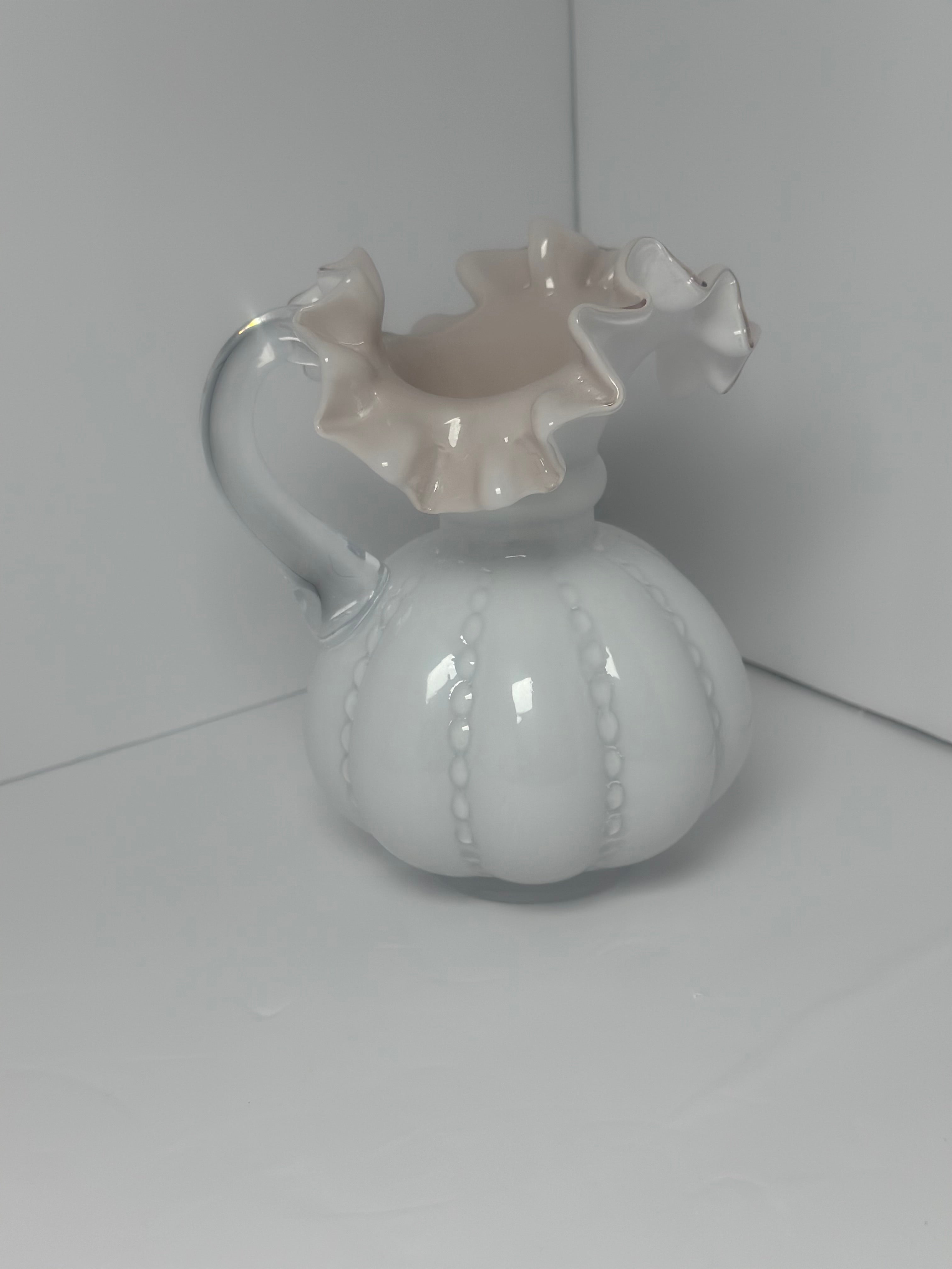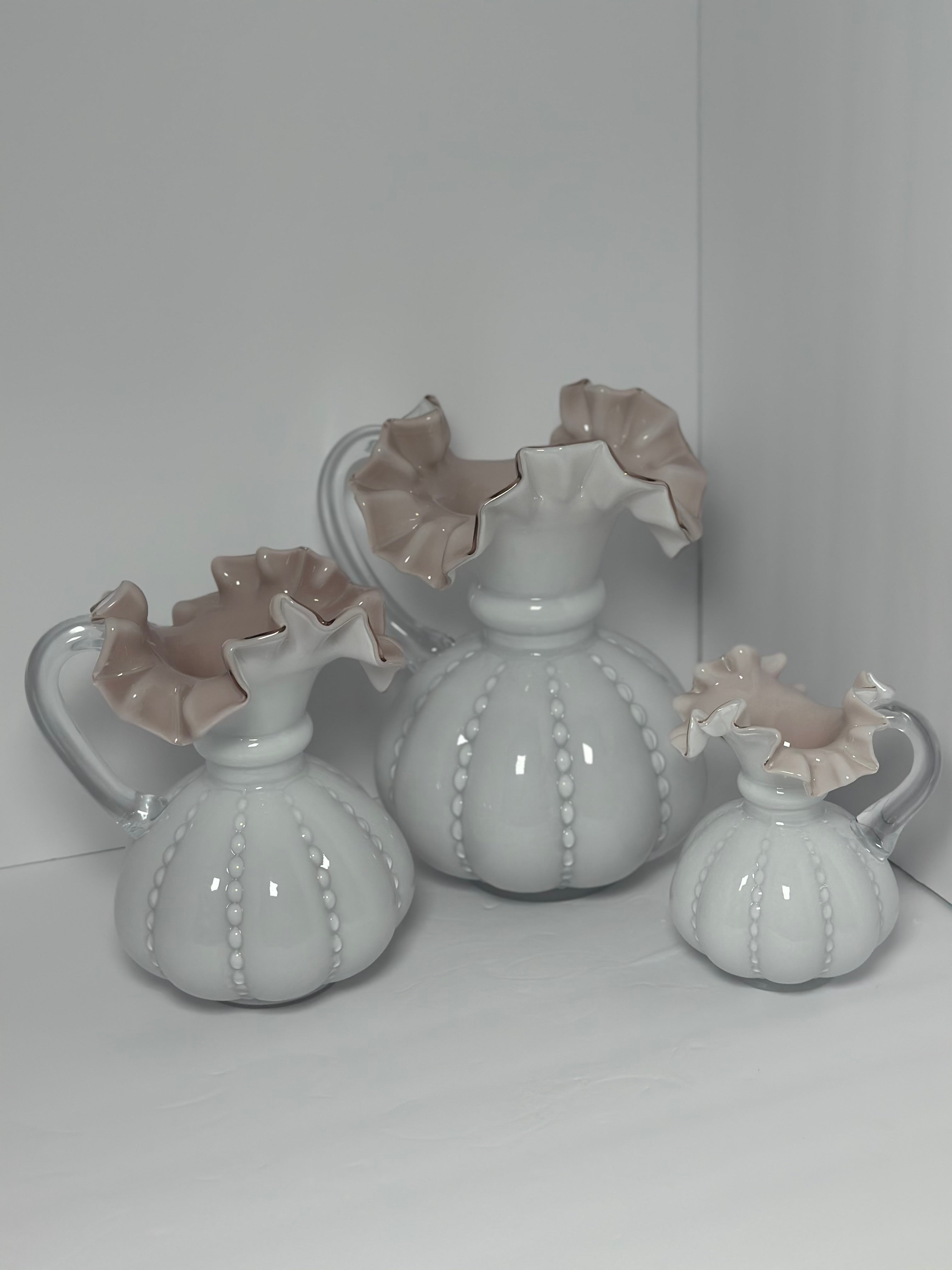 The Bianca Egg Glass Vase Pitcher combines classic design elements with contemporary sophistication, making it a dual-purpose addition suitable for various home environments. The shaped design is characterized by smooth, curving lines and a translucent white finish, contributing to a soft and airy aesthetic. This vase pitcher serves dual roles effectively, suitable for holding flowers, pouring water, or enhancing the aesthetic appeal of your environment. The Bianca Egg Glass Vase Pitcher exhibits a meticulous design, constructed from premium glass that ensures both longevity and aesthetic appeal. This piece contributes a sophisticated and polished element to your decor, regardless of whether it is positioned on a dining table, mantle, or countertop.