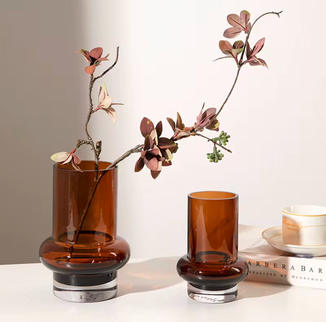 The Gingerbread Triplets Glass Vase Set effectively incorporates the warmth and charm associated with the holiday season, making it a suitable addition to your home throughout the year. This set of vases is constructed from premium glass, showcasing a deep amber color that evokes the appearance of freshly baked gingerbread. The intricate texture and refined curvature of the vases suggest a warm, festive atmosphere, positioning them as suitable choices for holiday decor or as distinctive elements in both contemporary and rustic environments. The Gingerbread Triplets Glass Vase Set serves multiple purposes, making it suitable for showcasing fresh flowers, dried botanicals, or functioning as standalone decor. Its design contributes to the aesthetic appeal of living rooms, dining areas, or kitchen counters, enhancing the overall ambiance. The collection comprises three vases of varying sizes, each harmonizing with the others through its gentle amber hue and appealing design.