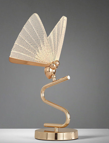 LED Table Lamps in Gold Butterfly Design Clear Glass Night Light: Contemporary Style with Luxurious Glass Lampshade and Metal Base Reading Light for Bedroom and Living Room Bedside Table.