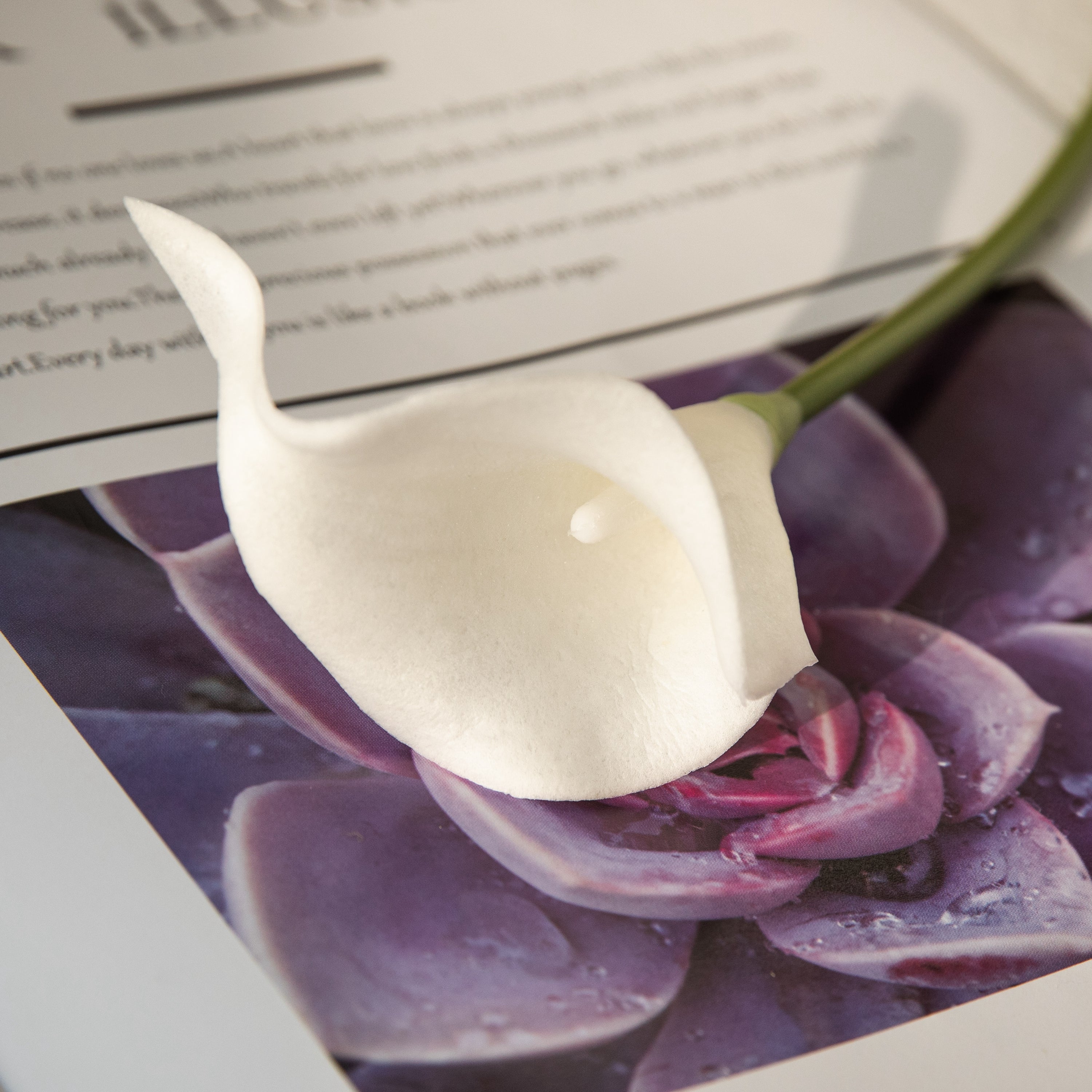 With its realistic blossoms made from premium polyurethane (PU) material, this miniature PU Calla Lily plant will add style and appeal to any area. This small plant is ideal for desks, tabletops, or shelves since it gives a touch of natural beauty without requiring much upkeep. It is a classic ornamental element for any office or house because of its realistic design and vivid colors.
