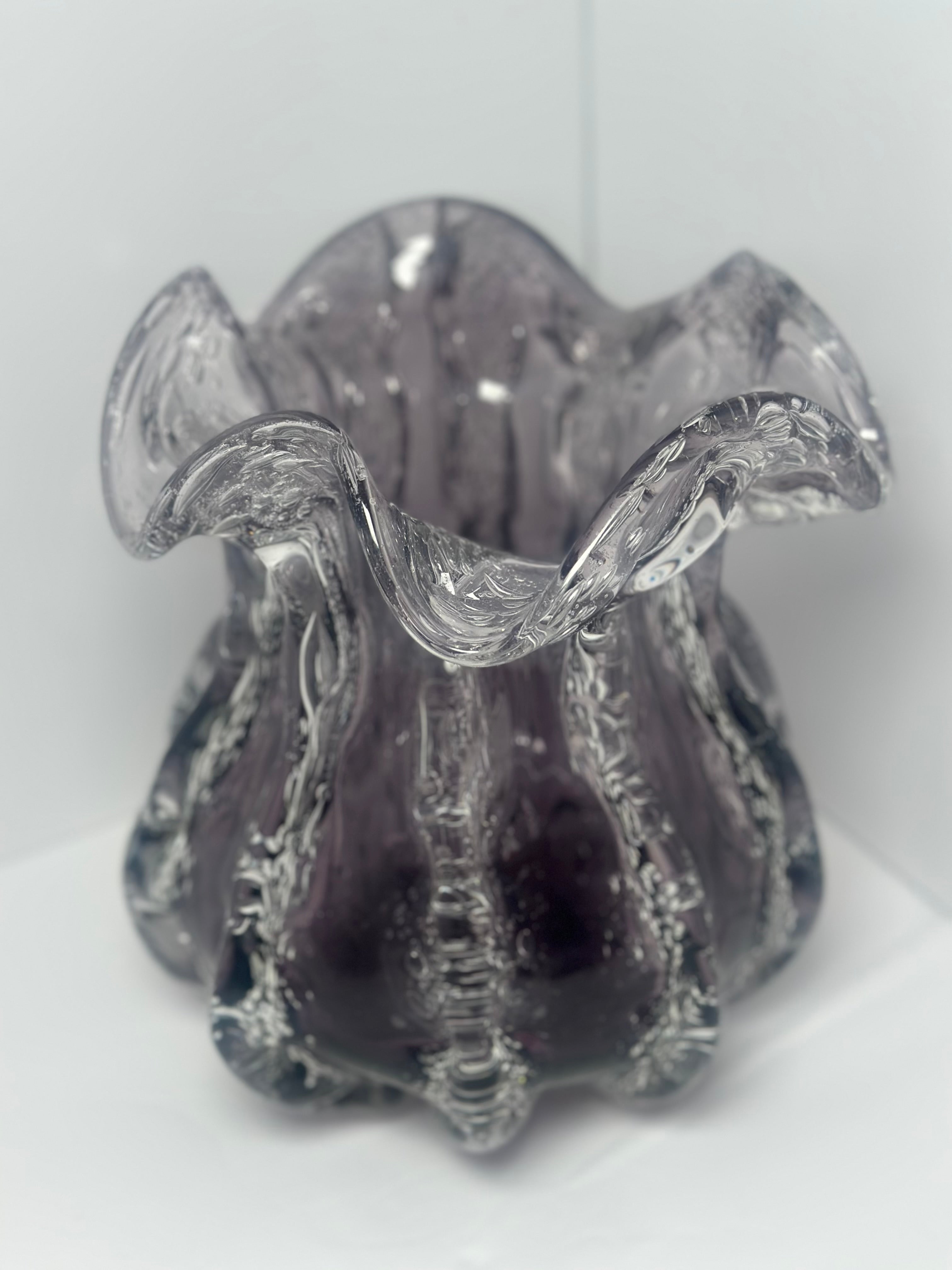 Add a captivating element of oceanic elegance to your residence with the Purple Whale Glass Vase Set. Constructed from premium glass, each vase exhibits a striking gradient of deep purples and delicate lilacs, evocative of magnificent ocean sunsets. This collection has three vases of differing heights, ideal for displaying flowers, candles, or serving as independent decorative elements. Their streamlined, arched forms reflect the elegance of a whale navigating across water, imparting peace and sophistication to any environment. The Purple Whale Glass Vase Set is perfect for living rooms, dining tables, or special occasions, embodying modern elegance and enduring allure.