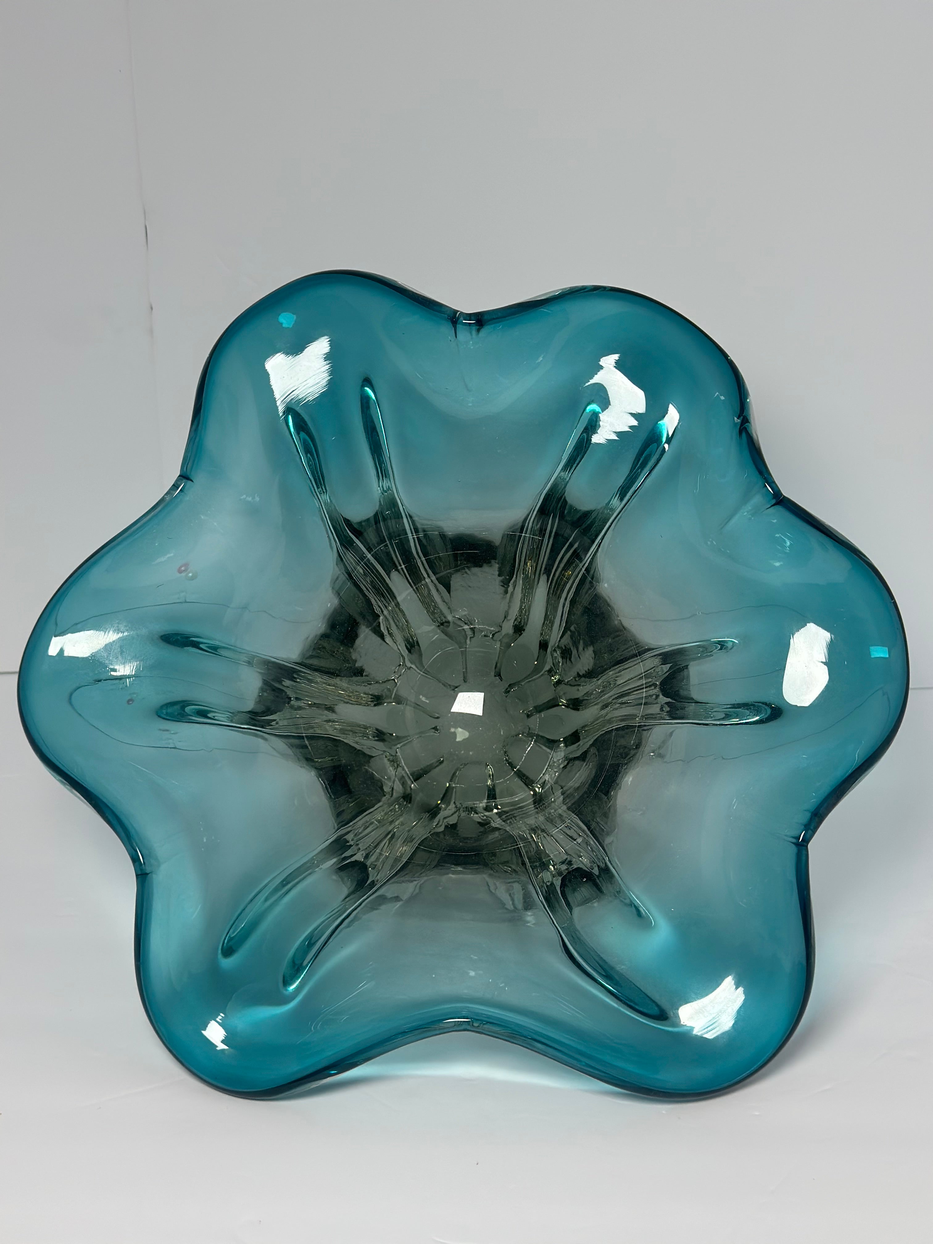 The Bohai Sea Fruit Bowl serves as an intriguing centerpiece, drawing inspiration from the tranquil aesthetics of the Bohai Sea. This fruit bowl showcases a hand-blown glass design characterized by a smooth surface and a color palette of deep ocean blue and soft seafoam green, reflecting the subtle variations found in coastal waters. The rippled edges and organic curves contribute a distinctive, artistic element, serving both decorative and functional purposes. The Bohai Sea Fruit Bowl serves multiple purposes, effectively accommodating fresh fruit, decorative items, or functioning independently as a striking display. Its design introduces an element of tranquility and sophistication to various environments, including dining tables, kitchens, and living areas. The design exhibits a versatility that enhances both contemporary and coastal-themed spaces.
