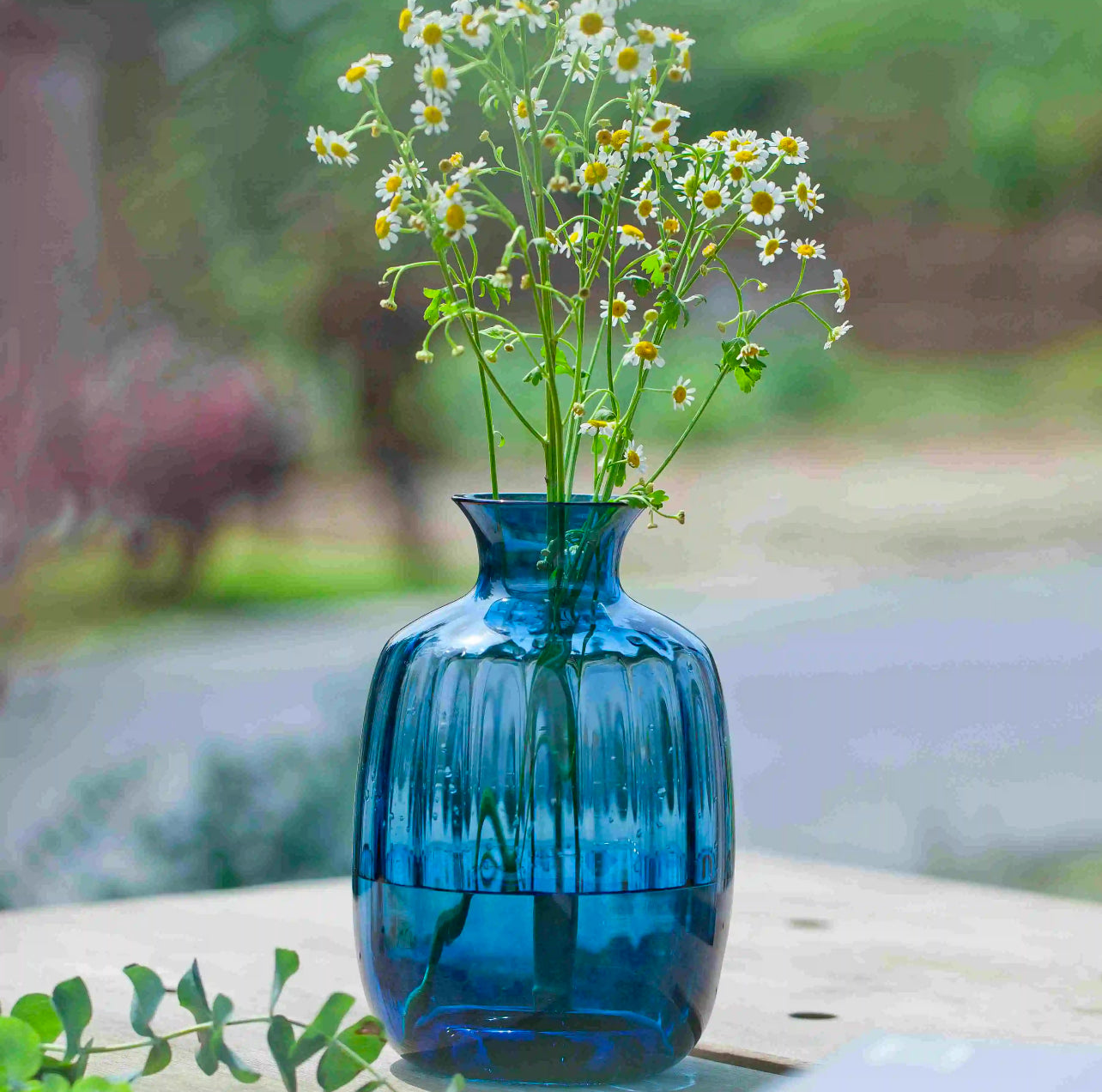 The Peacock Blue Glass Vase presents a visually striking element that introduces a dynamic infusion of color to any space. This vase draws inspiration from the vibrant colors of a peacock's feathers, showcasing deep blue tones complemented by a subtle glossy finish, resulting in a visually impactful design. The elegant, flowing design and sleek glass finish contribute to a polished and sophisticated appearance, rendering it suitable for contemporary or eclectic decor styles. The Peacock Blue Glass Vase serves multiple functions, whether showcasing fresh flowers, dried botanicals, or standing alone as a decorative element, contributing a distinct elegance and charm to various environments. The striking color and streamlined design position it as an ideal focal point for living rooms, dining areas, or entryways.