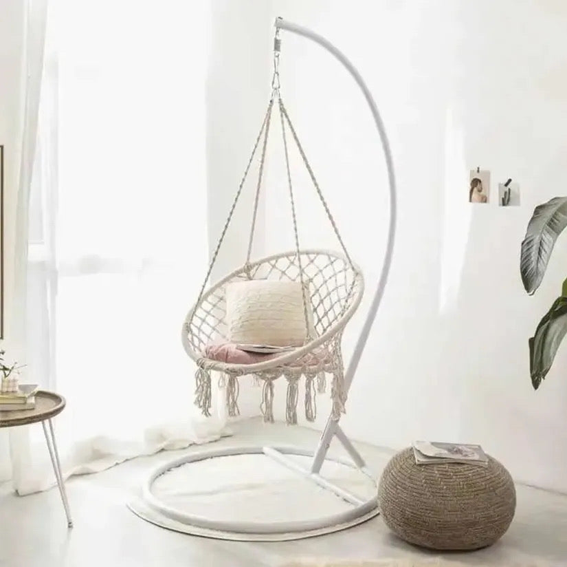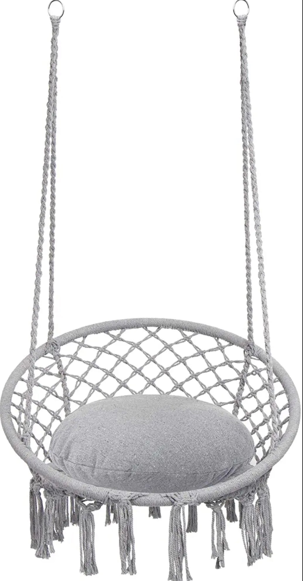 This comfortable hammock chair with a matching pillow will let you relax even more. This chair blends style and functionality with its long-lasting, breathable fabric, making it ideal for both indoor and outdoor use. The solid suspension construction guarantees a secure and comfortable ride, and the neutral tan hue goes well with any type of décor.