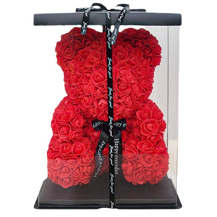 Our Handmade Rose Teddy Bear is the perfect token of your eternal love. Handmade from a multitude of delicate foam roses, this charming bear stands as a one-of-a-kind representation of love and grace. A unique and enduringly lovely creation, each rose is painstakingly arranged. You don't need words to express how much the Handmade Rose Teddy Bear means—it's ideal for birthdays, anniversaries, Valentine's Day, or just because. Thanks to its sturdy construction and lightweight material, this keepsake will last for many years.