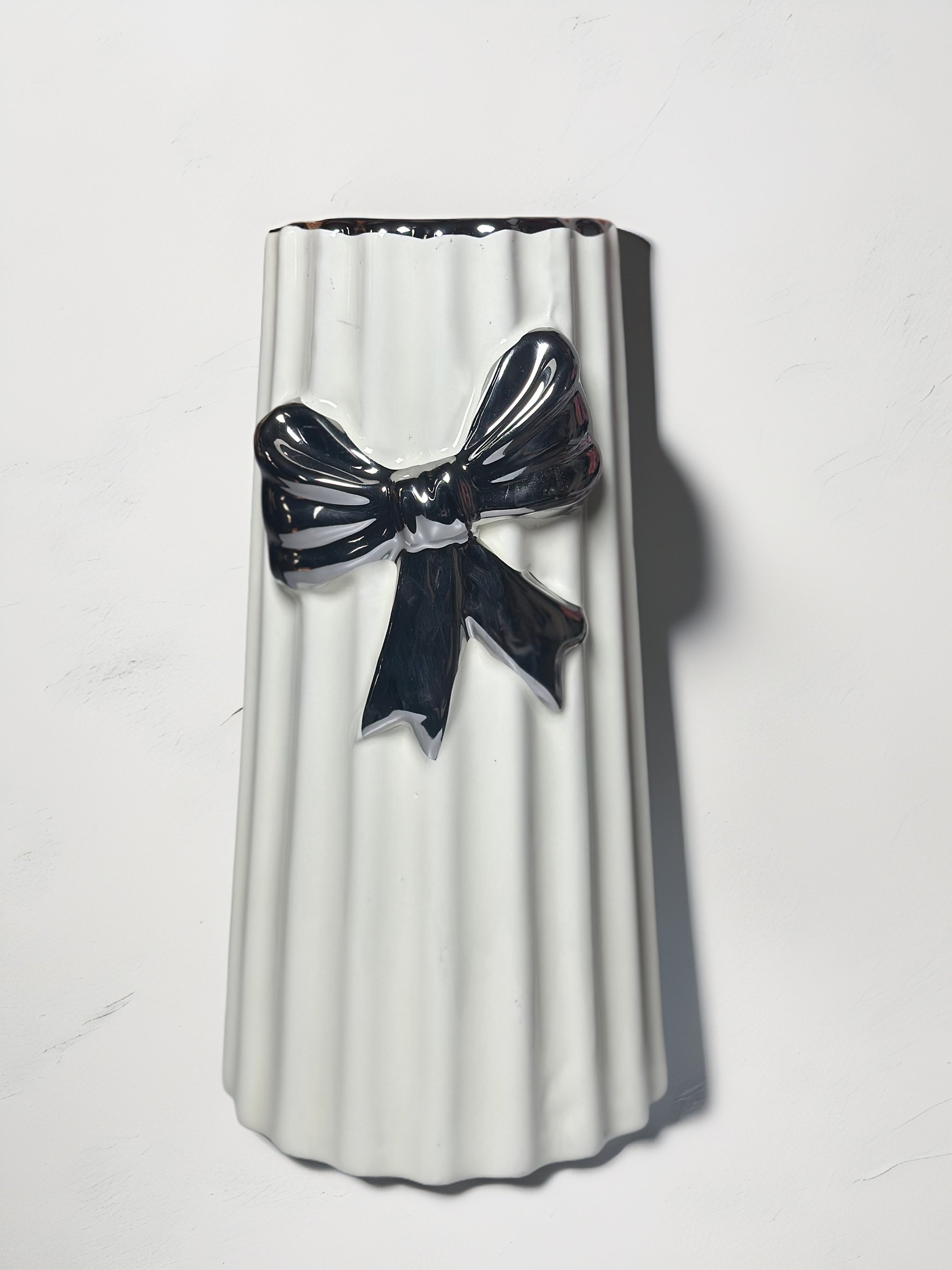 Enhance your environment with the Ivory Vase adorned with a Ribbon. This vase boasts a smooth, matte ivory surface, making it suitable for any décor style, whether modern or rustic. The use of a finely wrapped ribbon elevates its classic allure, rendering it an ideal accent for any home or event décor. The Ivory Vase with Ribbon is suitable for displaying fresh flowers, dried arrangements, or serving as an independent decorative element, providing both variety and elegance. When positioned on a dining table, mantel, or bedside, it produces an easily sophisticated appearance.