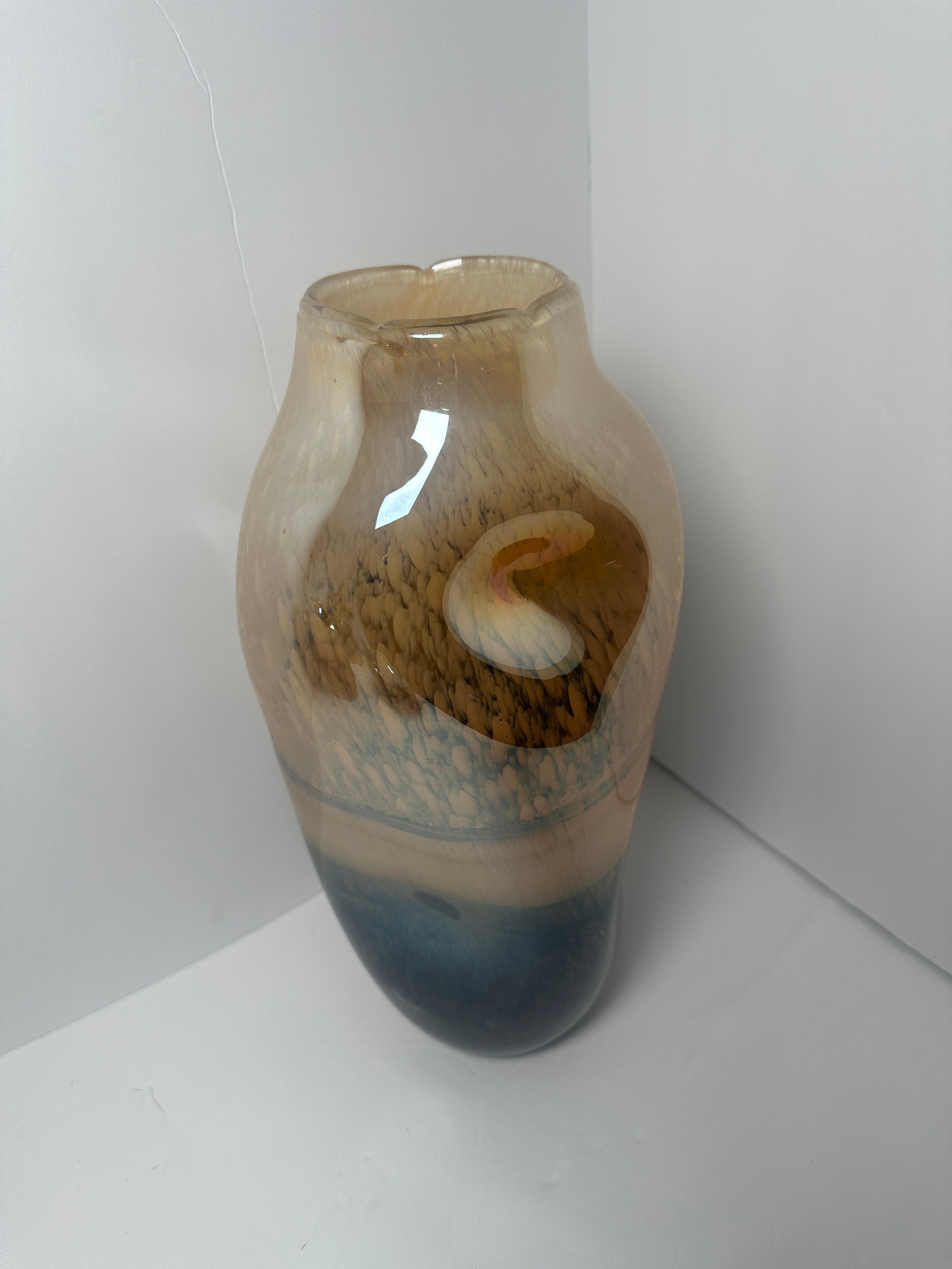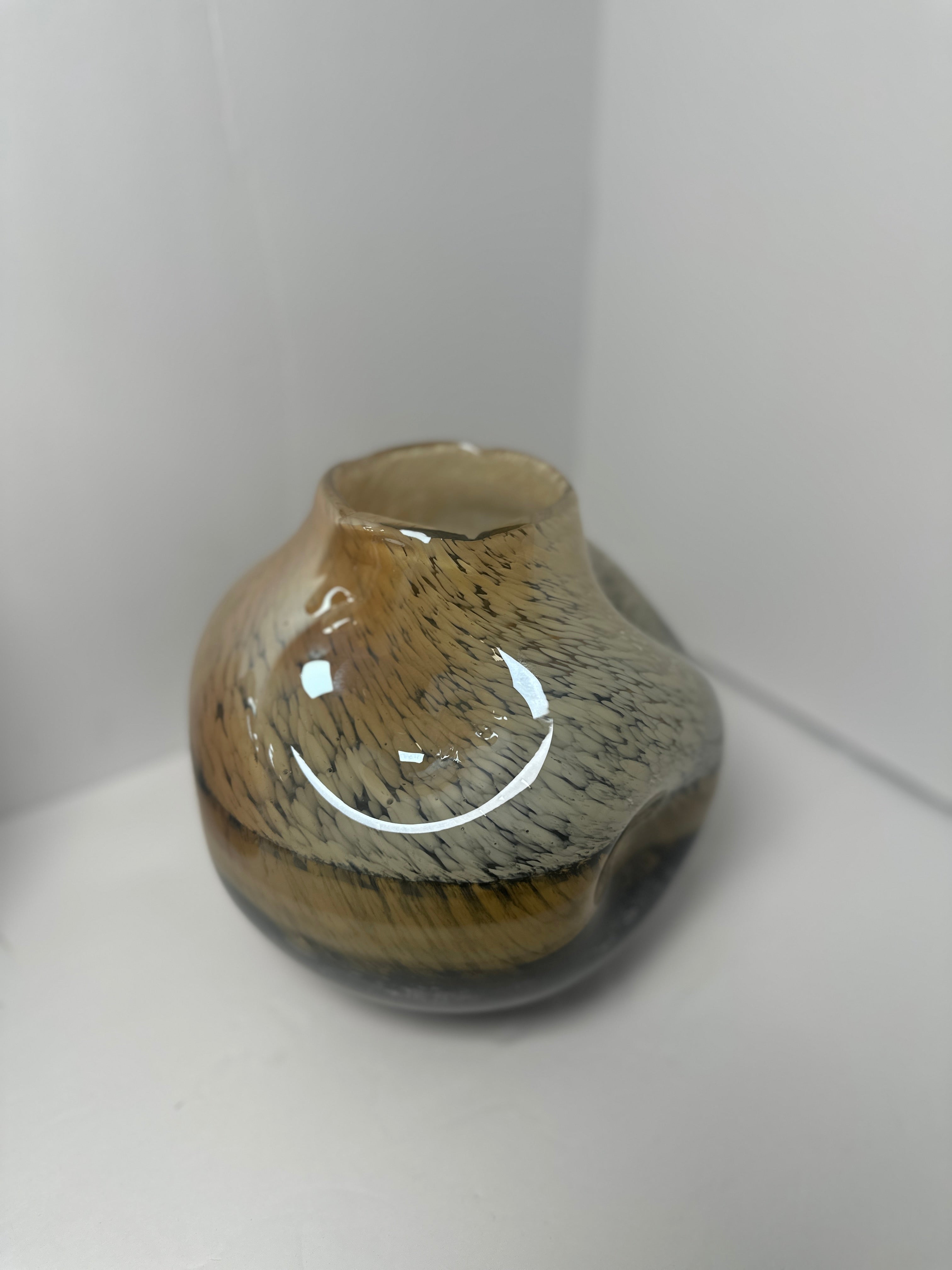 The Tiger's Eye Glass Vase Set is a beautiful piece of art that is based on the rich, golden-brown colors of the famous gemstone. It's inspired by the wild beauty of nature. This vase is made of high-quality glass and has a beautiful marbled pattern with flowing shades of amber, caramel, and smoky brown. Its sleek, modern shape makes it a great addition to any room, whether it's used by itself or to hold fresh or dried flower arrangements.