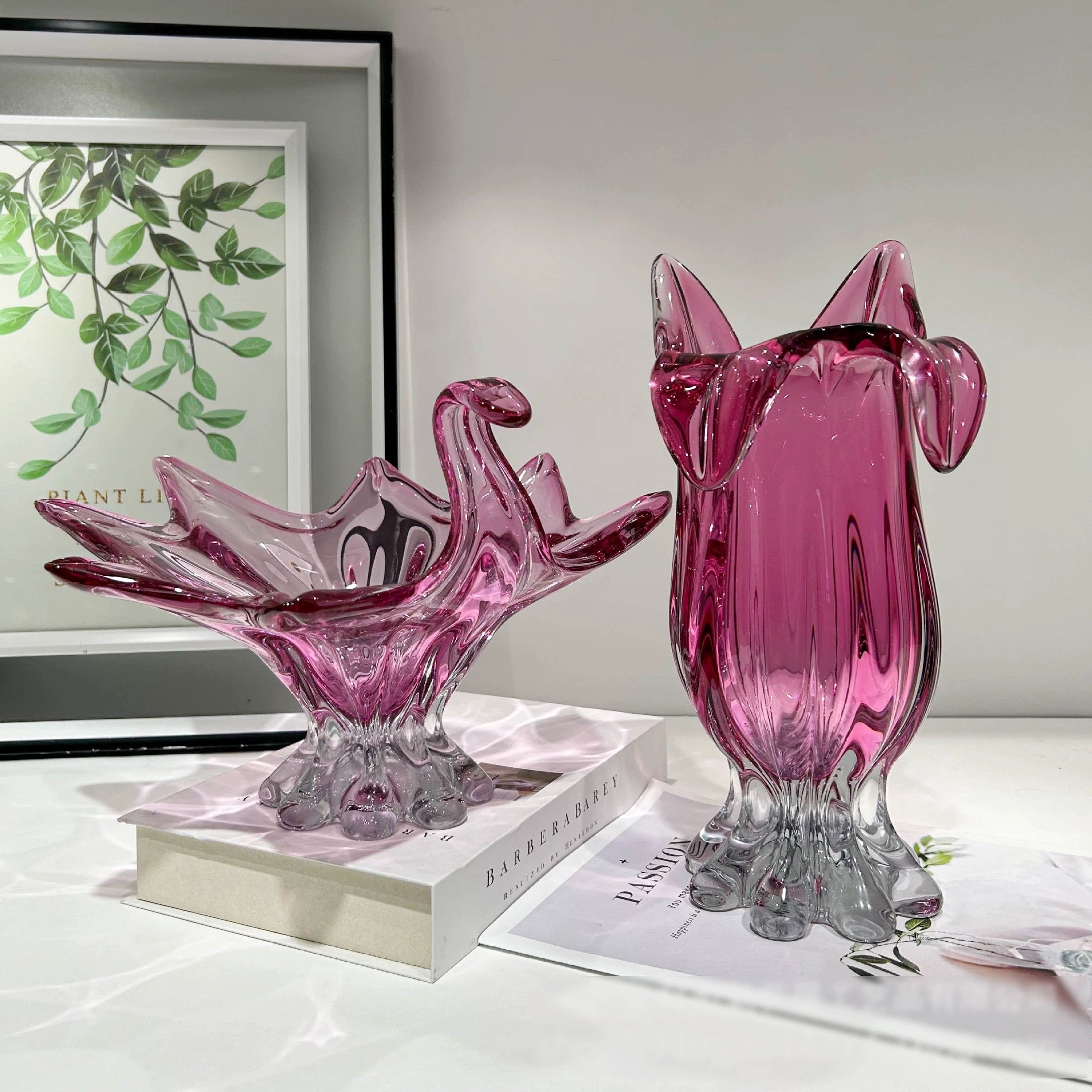 This exquisite Pink Lily Shaped Glass Vase will add a touch of elegance to your residence. This vase is characterized by a soft pink hue that imparts warmth and appeal to any environment, drawing inspiration from the graceful silhouette of a blooming tulip. A timeless, refined appearance that is characterized by delicate curves and a lily- inspired shape. A smooth, glossy coating on high-quality glass. Ideally proportioned for use as a standalone statement piece, dried flowers, or fresh blossoms.