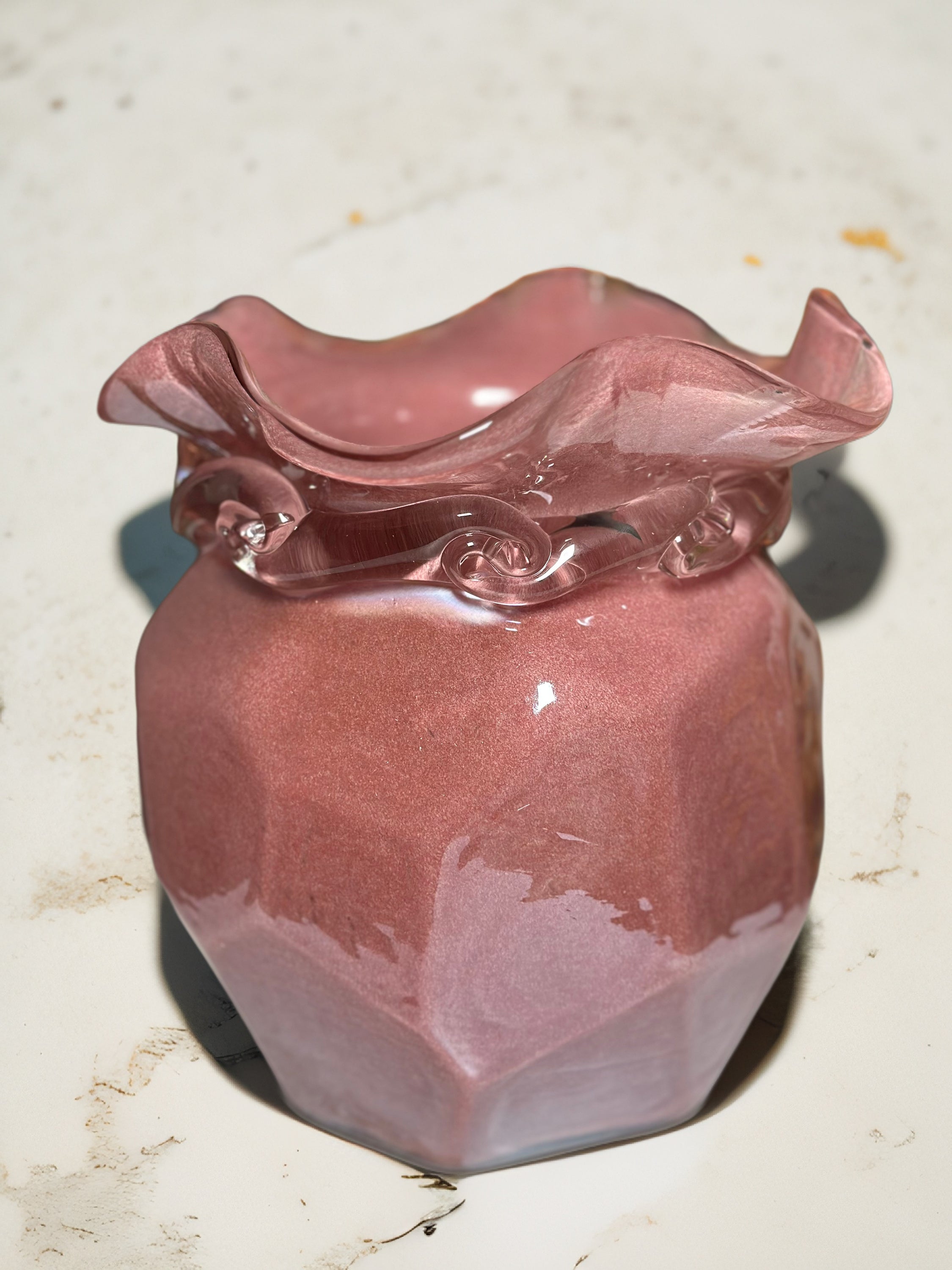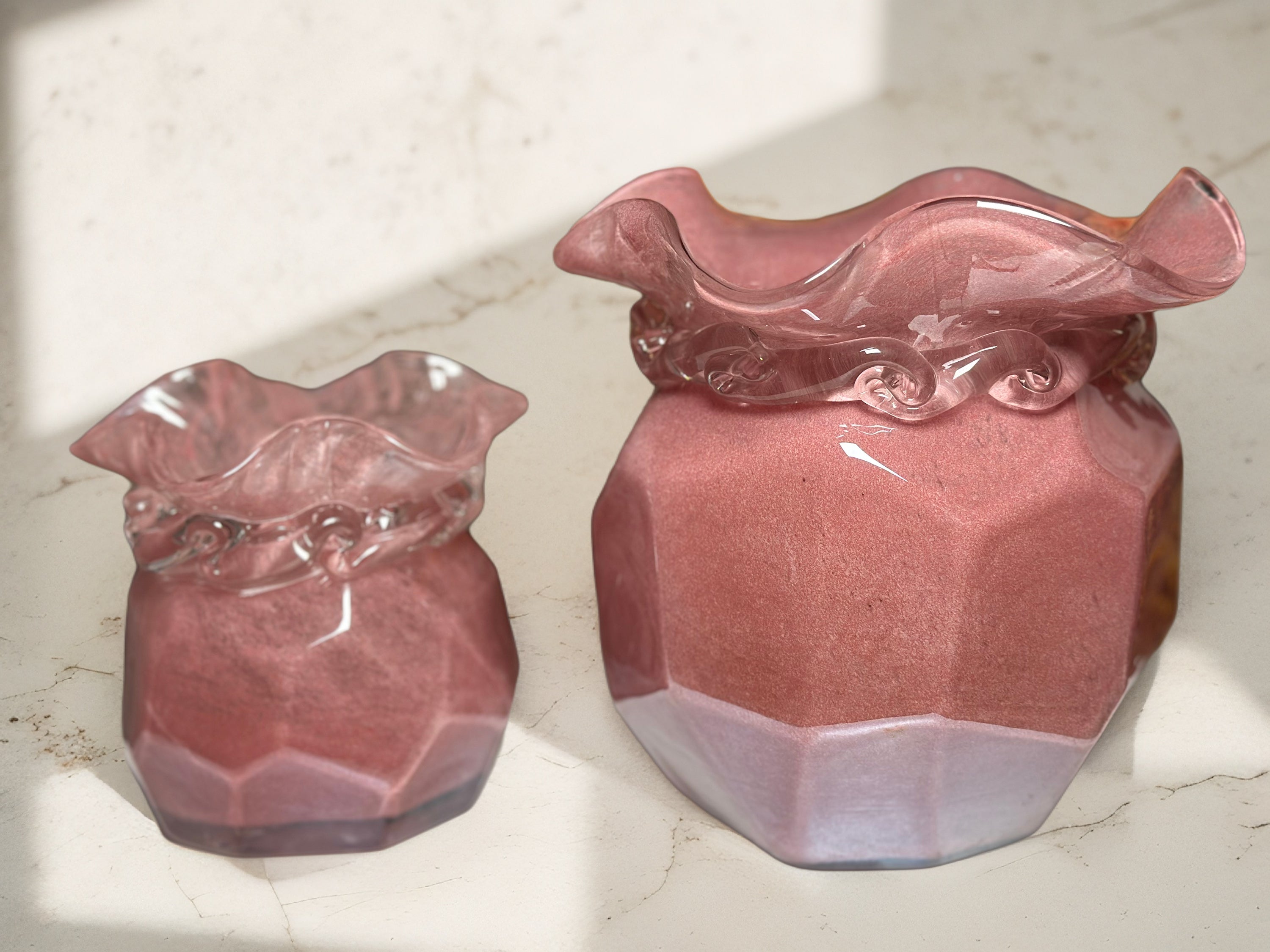 Enhance your home decor with the Rosa Morado Crush Glass Vase Set. Constructed from premium glass, each vase exhibits a distinctive crushed texture in a deep purple shade, evocative of the vivid tones of flourishing roses. Transform a regular glass vase into an elegant pink crushed glass vase for a creative DIY project. This guide offers detailed techniques to attain a sophisticated appearance.