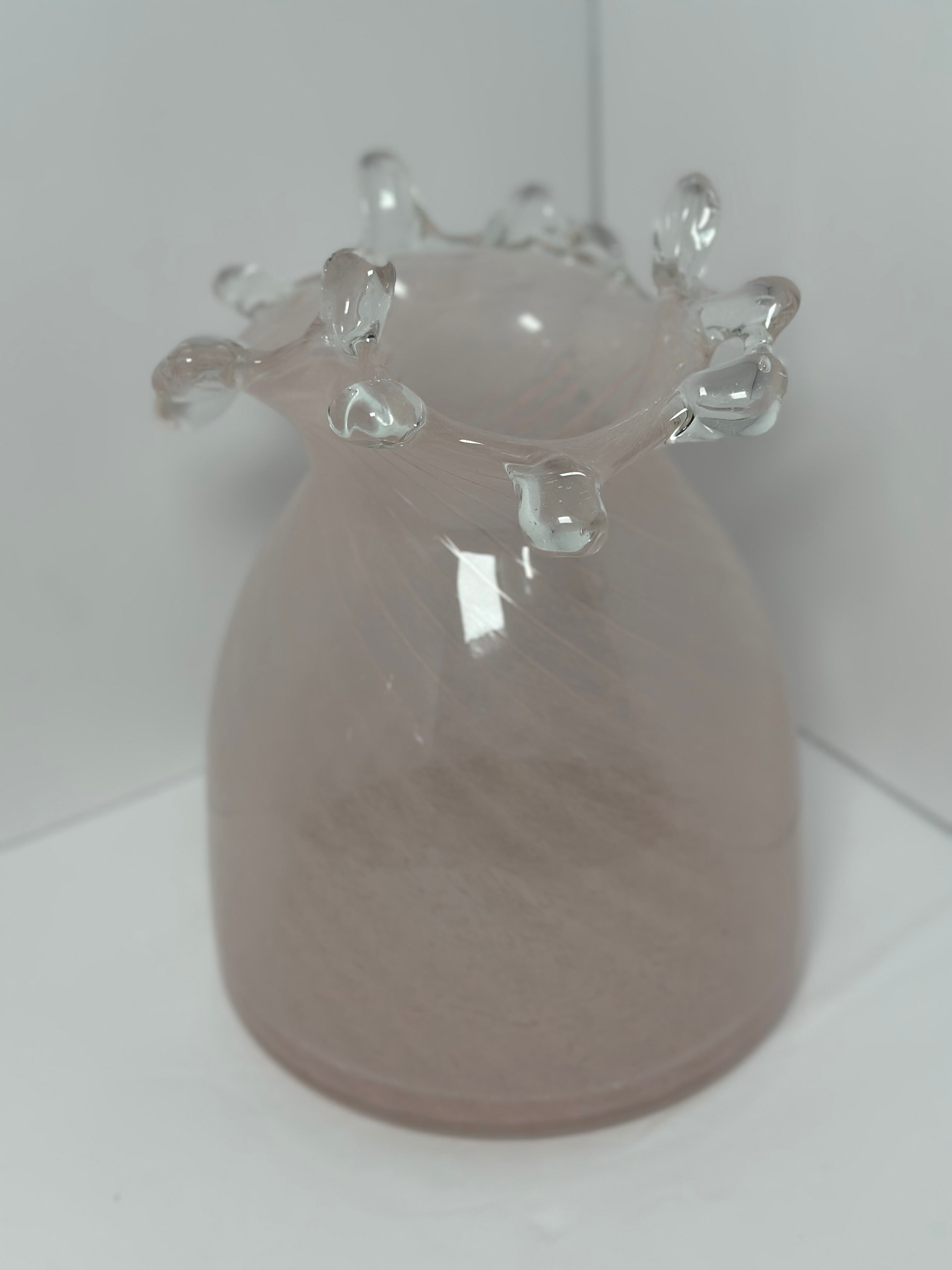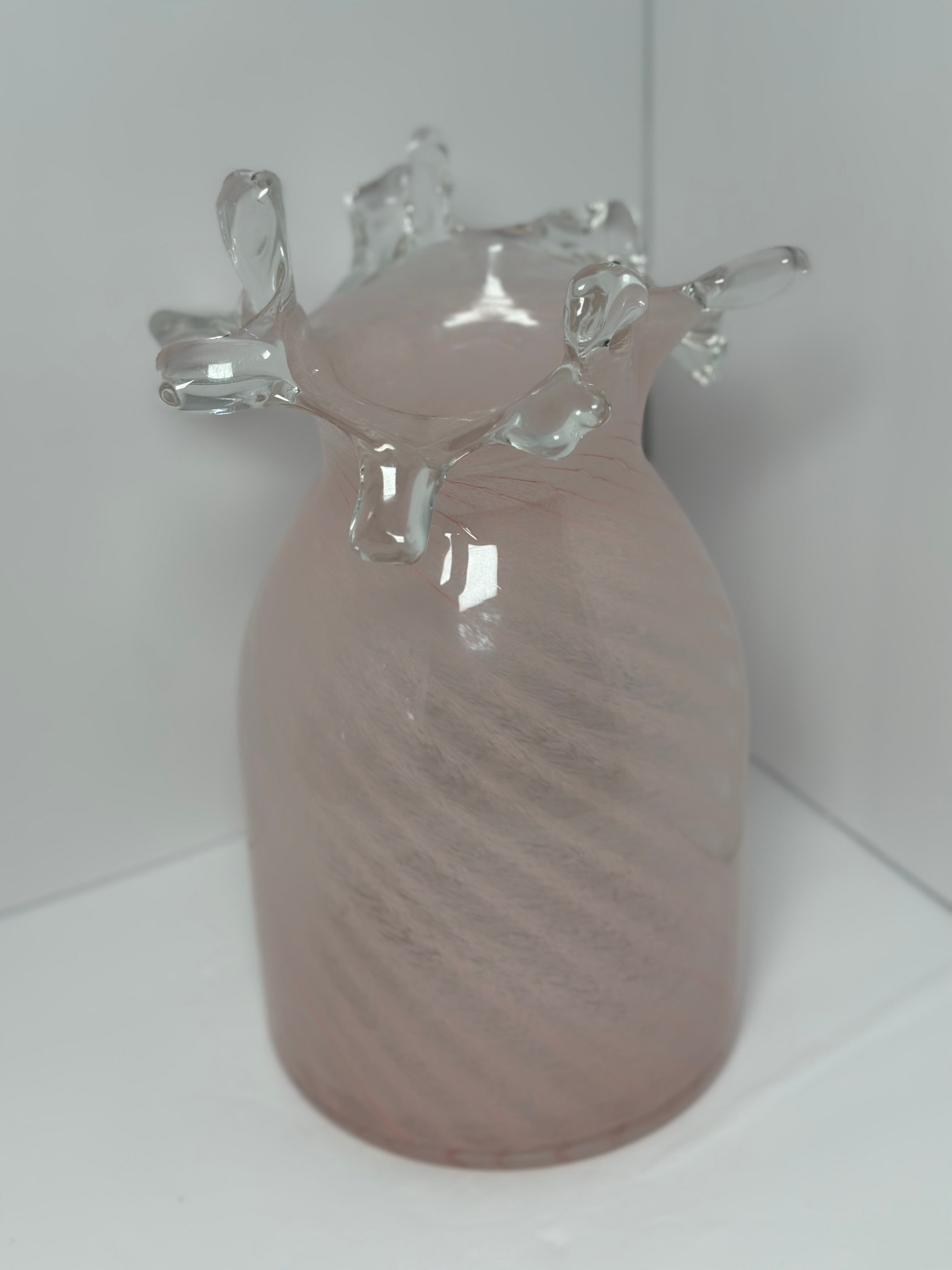 Enhance your environment with the alluring sophistication of the Pink Ice Sculpture Glass Vase. This exquisite item merges the elegance of soft pink tones with the striking, sculptural appeal of frosty, crystalline design. Ideal as a centerpiece or an independent artwork, it imparts an element of richness and sophistication to any environment. Exhibits a complex, ice-themed texture with a delicate blush pink hue, reflecting light exquisitely. The Pink Ice Sculpture Glass Vase is an enduring item, ideal for individuals who value artistic design and subtle sophistication in their decor.