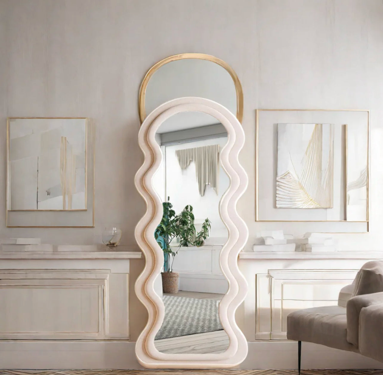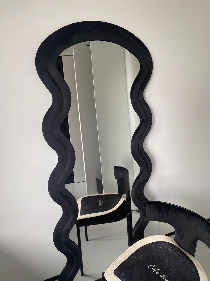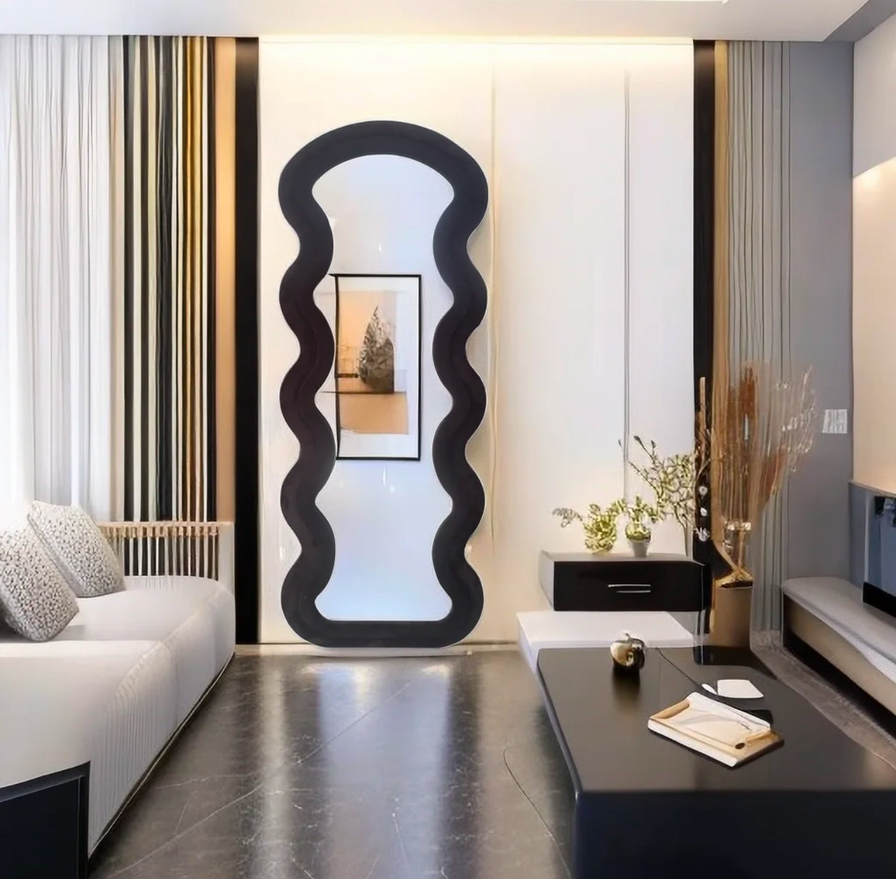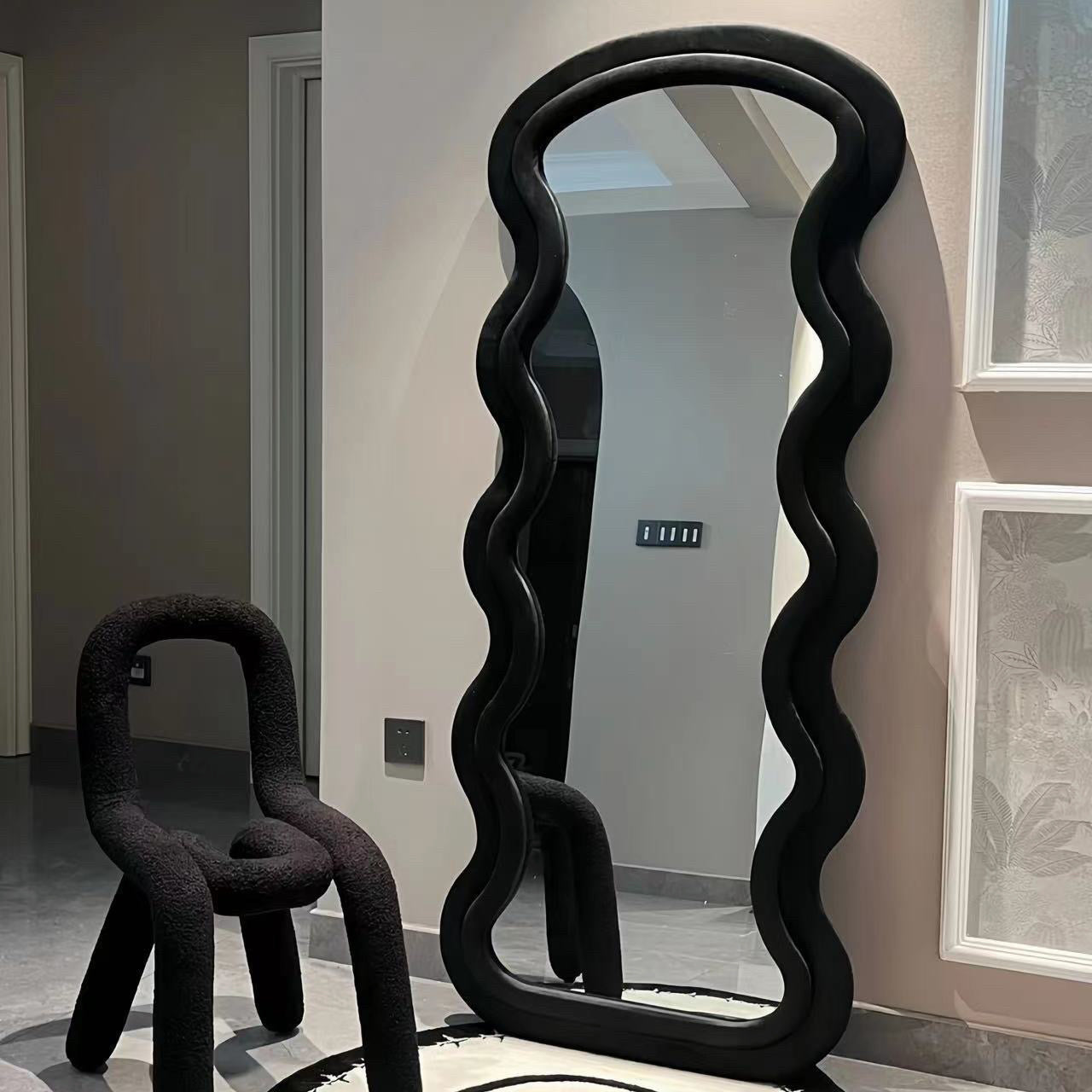 With its opulent velvet frame and robust built-in support, this black velvet floor mirror will add a sleek, sophisticated touch to any room. The deep black velvet texture lends a touch of contemporary elegance to any space, and the full-length design offers a comprehensive perspective for dressing. This mirror seamlessly blends design and efficiency, making it ideal for living spaces, dressing rooms, and bedrooms.